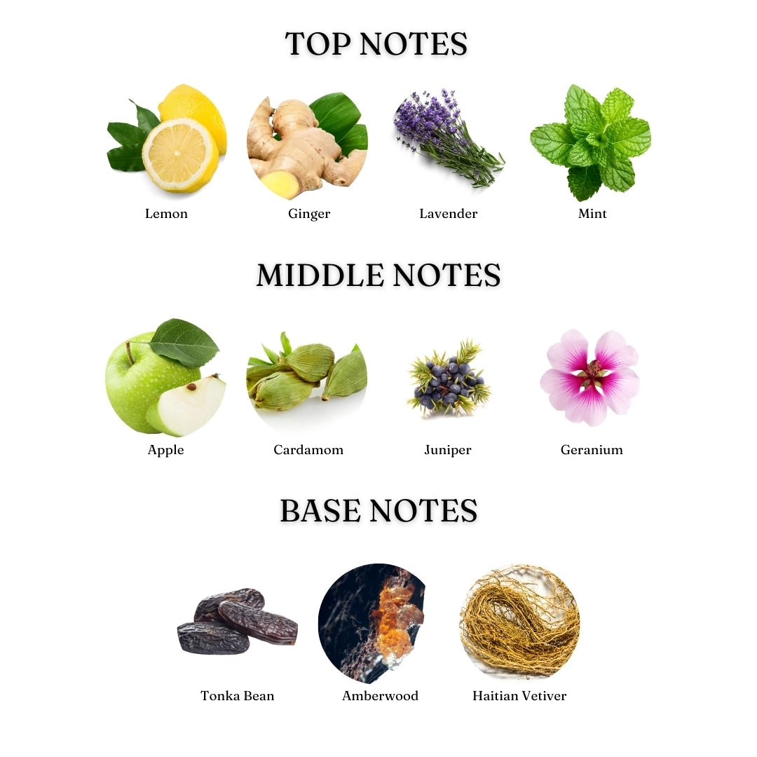 Notes: Lemon, Ginger, Cardamom, Cade Wood, Tonka Bean, Vetiver